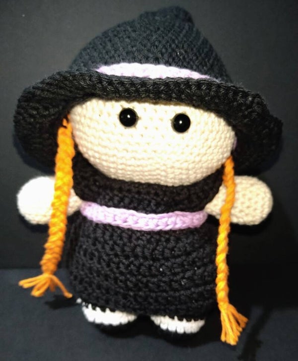 Perfect for Halloween, this cute handmade doll in a witch costume is an ideal present for ages 36 months and over. Made from Rainbow cotton yarn, this product can be washed at 40 degrees and full care instructions will be sent with delivery.